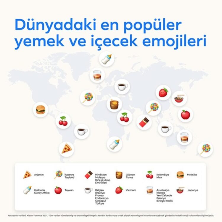 Facebook tarafının açıklamalarına göre son 3 aylık süre içerisinde 15 milyondan fazla nazar boncuklu emoji paylaşıldı. Ülkemizde en çok kullanılan emoji ise gülmekten gözlerinden yaş gelen emoji oldu. Sırası ile en çok kullanılan diğer emojiler ise kırmızılı kalp, çarpan eller ve kibirli emoji ülkemizde sıkça kullanılıyor.